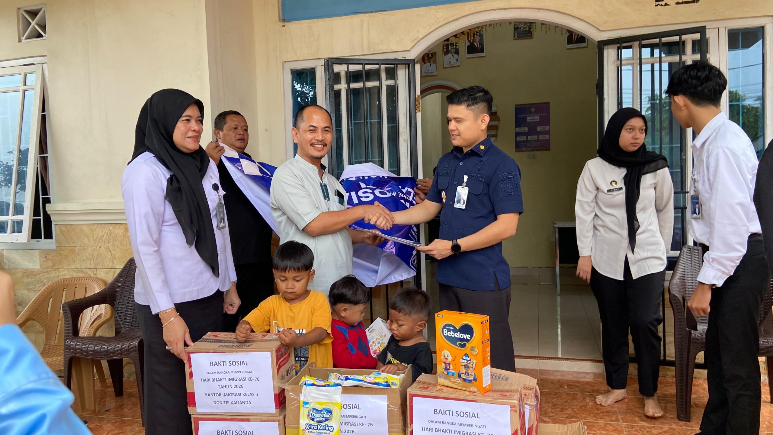 TIME IND, Lampung Selatan — Dalam rangka memperingati Hari Bakti Imigrasi ke-76, Kantor Imigrasi Kelas II Non TPI Kalianda menyalurkan bantuan sembako kepada Panti Asuhan Balita yang berlokasi di Jalan Pesisir Kalianda, Kecamatan Kalianda, Kabupaten Lampung Selatan, Kamis (8/1/2026).