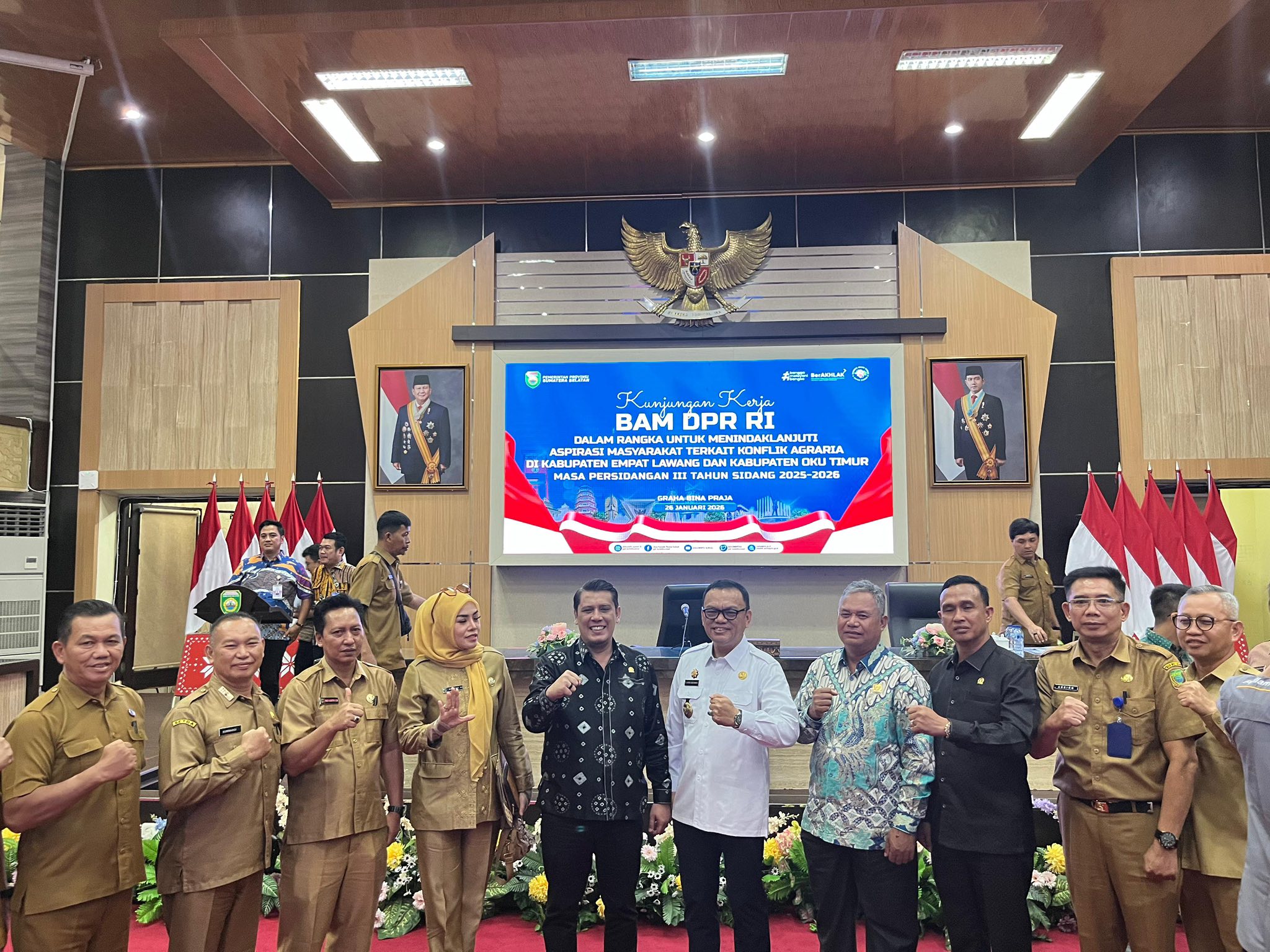 PALEMBANG, TIME IN – Bupati Empat Lawang, Joncik Muhammad, kembali menunjukkan komitmen seriusnya dalam menyelesaikan sengketa agraria di wilayahnya. Didampingi oleh Ketua DPRD dan Kapolres Empat Lawang, Bupati menghadiri Kunjungan Kerja (Kunker) Badan Aspirasi Masyarakat (BAM) DPR RI ke Provinsi Sumatera Selatan, Senin (26/1)