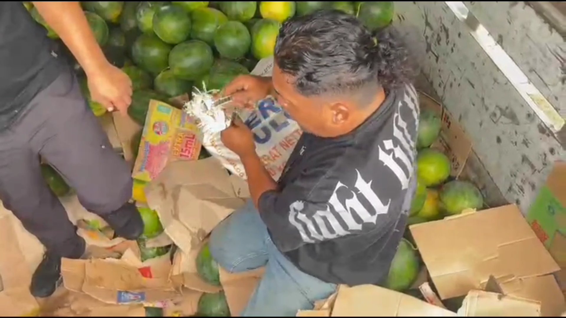 Puluhan paket sabu disembunyikan di bagian bawah muatan, lalu ditimbun rapi dengan tumpukan semangka. Sehingga sekilas tidak menarik kecurigaan dari petugas yang berjaga.
