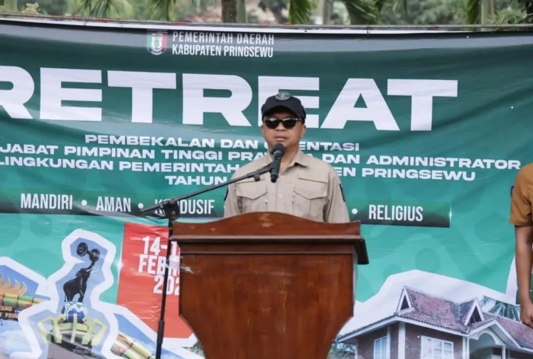 Pringsewu- TIME IND – Pemerintah Kabupaten Pringsewu menggelar kegiatan Retreat Pembekalan dan Orientasi bagi Pejabat Pimpinan Tinggi Pratama dan Administrator di lingkungan Pemkab Pringsewu, Sabtu (14/2/2026), di Kampoeng Wisata Tabek Indah Resort.