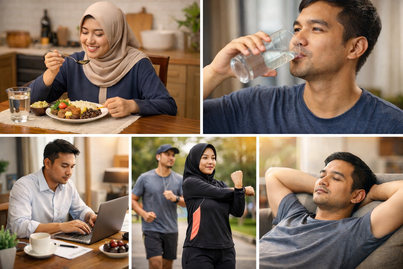 Jika memungkinkan, istirahat singkat atau tidur siang selama 15–20 menit dapat membantu memulihkan stamina dan meningkatkan fokus. Pola istirahat yang baik akan membuat tubuh lebih siap menjalani aktivitas hingga waktu berbuka tiba.