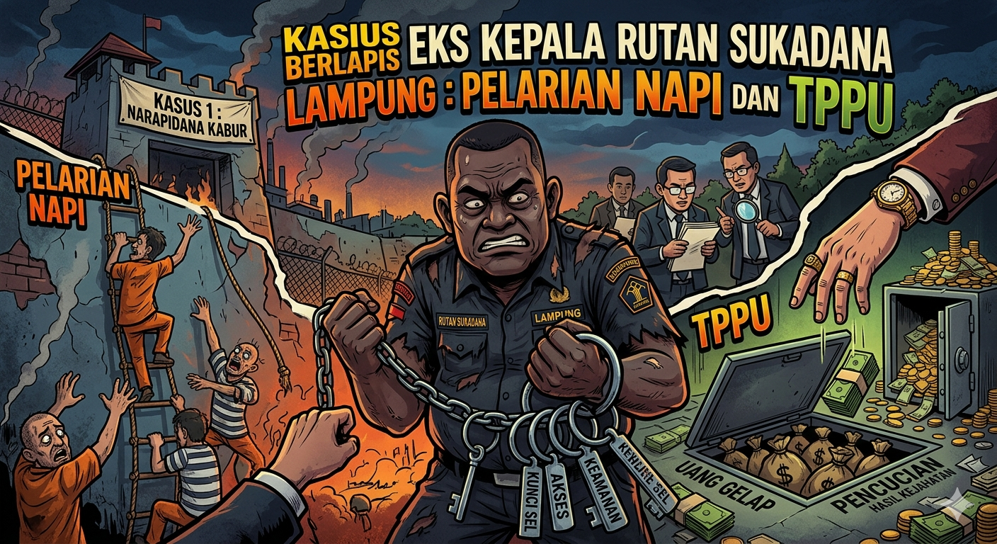 TIME IN, Lampung Timur – Mantan Kepala Rumah Tahanan Sukadana, Lampung Timur, Abdul Aziz, kini berstatus tersangka dalam perkara dugaan membantu pelarian narapidana bandar narkoba. Status itu ditetapkan penyidik Satuan Reserse Kriminal Polres Lampung Timur sejak 2024.