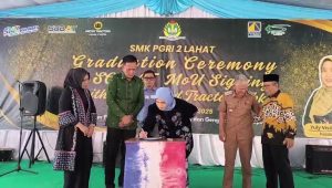 Penandatanganan MOU dengan United Tractors di acara Pelepasan siswa kelas XII SMK PGRI 2 Lahat